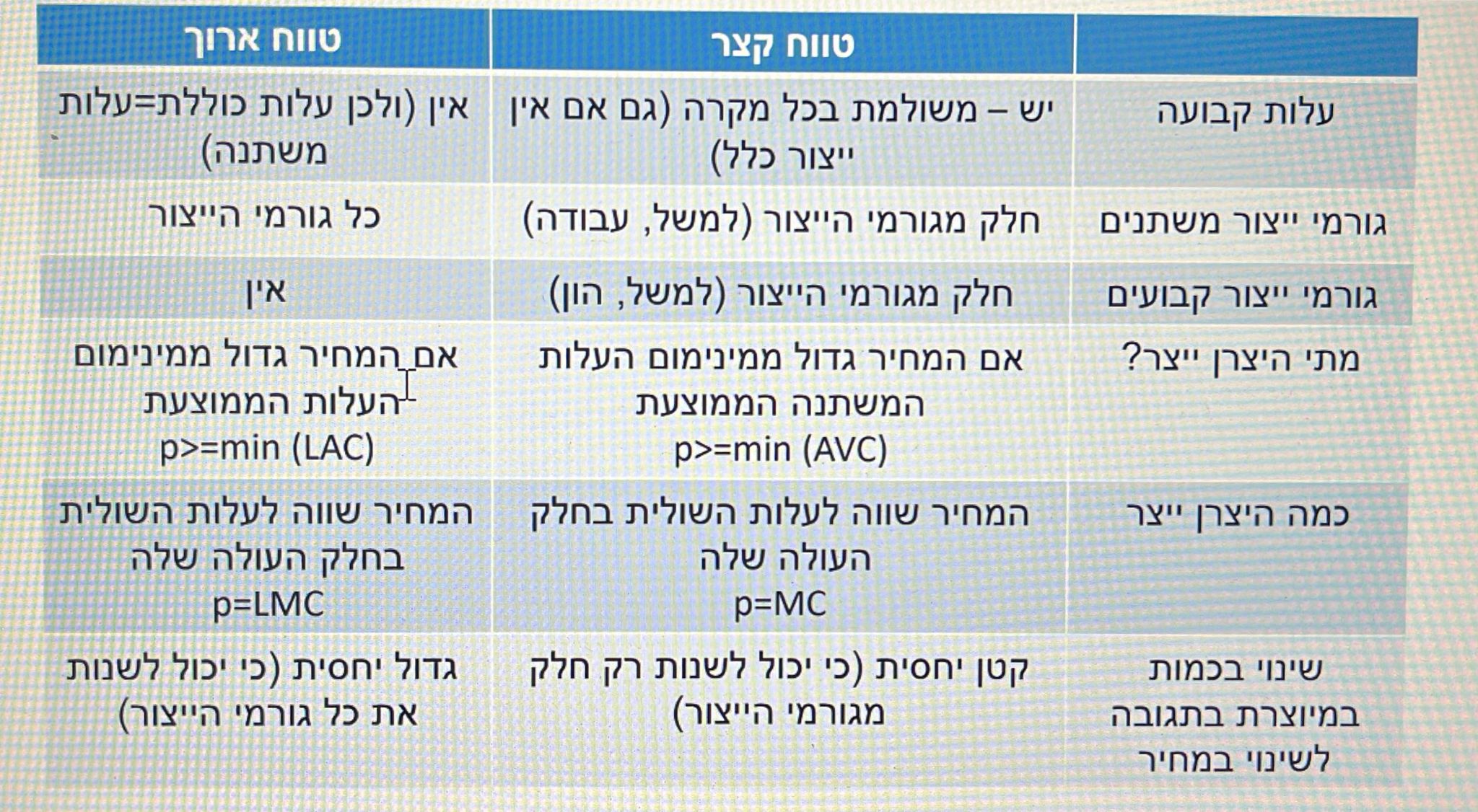 אני עכשיו ניסיתי לפתור שיעורי בית במיקרו כלכלה בנושא עלויות היצרן והיצע. אני מאוד מאוד מבולבלת, זה נניח אחד השקפים במצגת, איפה שרשום שעלות הקבועה וגורמי ייצור קבועים לא משתתפים בטווח ארוך וכן בקצר, בנוסף המושגים של LAC ו LMC, אני ממש לא מבינה מאיפה זה הגיעה, אני לא חס וחלילה אומרת שסטאדיס פספס משהו או לא לימד טוב או טעה אבל אני פשוט מבולבלת רצח כי לא מבינה איפה האי הבנה שלי ולמה זה כזה שונה