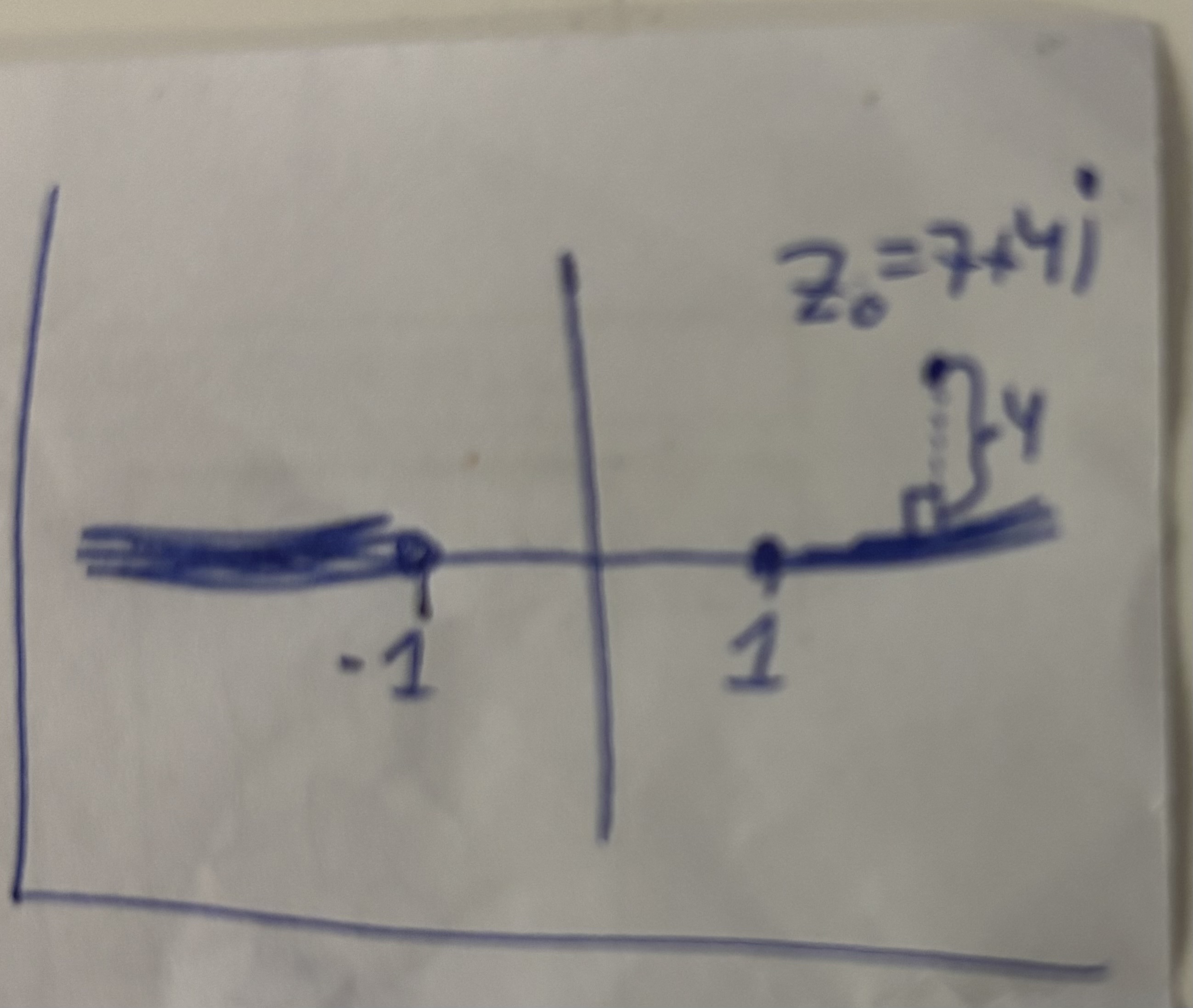 קודם כל מעולה שהתחלת עם הצפייה של הפקל, כל דבר כל חלום כל רעיון וכל טריק שמופיעים במבחן מכוסים בו אז חשוב לכסות את כולו ולהפנים אותו ואתה תהיה מעולה עוד חודש וקצת. לגבי מה ששאלת צירפתי לך תמונה, ברגע שאנחנו יודעים את הלייזרים פה( הקווים המודגשים) , אני מסתכל מה המרחק הכי קצר בין נקודת הפיתוח ללייזרים שלי שהם ישרים, והמרחק הכי קצר בין נקודה לישר הוא תמיד יהיה אנך שיוצא מהנקודה לישר כלומר גובה לישר שיוצר תשעים מעלות, כי אם הייתה מעביר קו אחר הוא בטוח גדול יותר לפי משפט פתגורס למשל, בכל מקרה המרחק הכי קצר חייב להיות הגובה לישר , האנך לישר. ואז בגלל שהנקודה היא 7+4i זה אומר שאם אני חושב עליה בתור נקודה במישור R2 , יש לה רכיב X =7, Y=4 ורכיב Y הוא מי שמתאר את ה"גובה" של הנקודה, אז זה למה המרחק שבתמונה שווה ל-4, כלומר זה המרחק בין נקודת הפיתוח לבעיה הכי קרובה, יש אינסוף בעיות אבל אנחנו רוצים את הכי קרובה והבעיה הכי קרובה Zָ=7. לסיכום : רדיוס ההתכנסות הוא המרחק בין 7+4i לבין 7 והמרחק הזה שווה ל:4 .